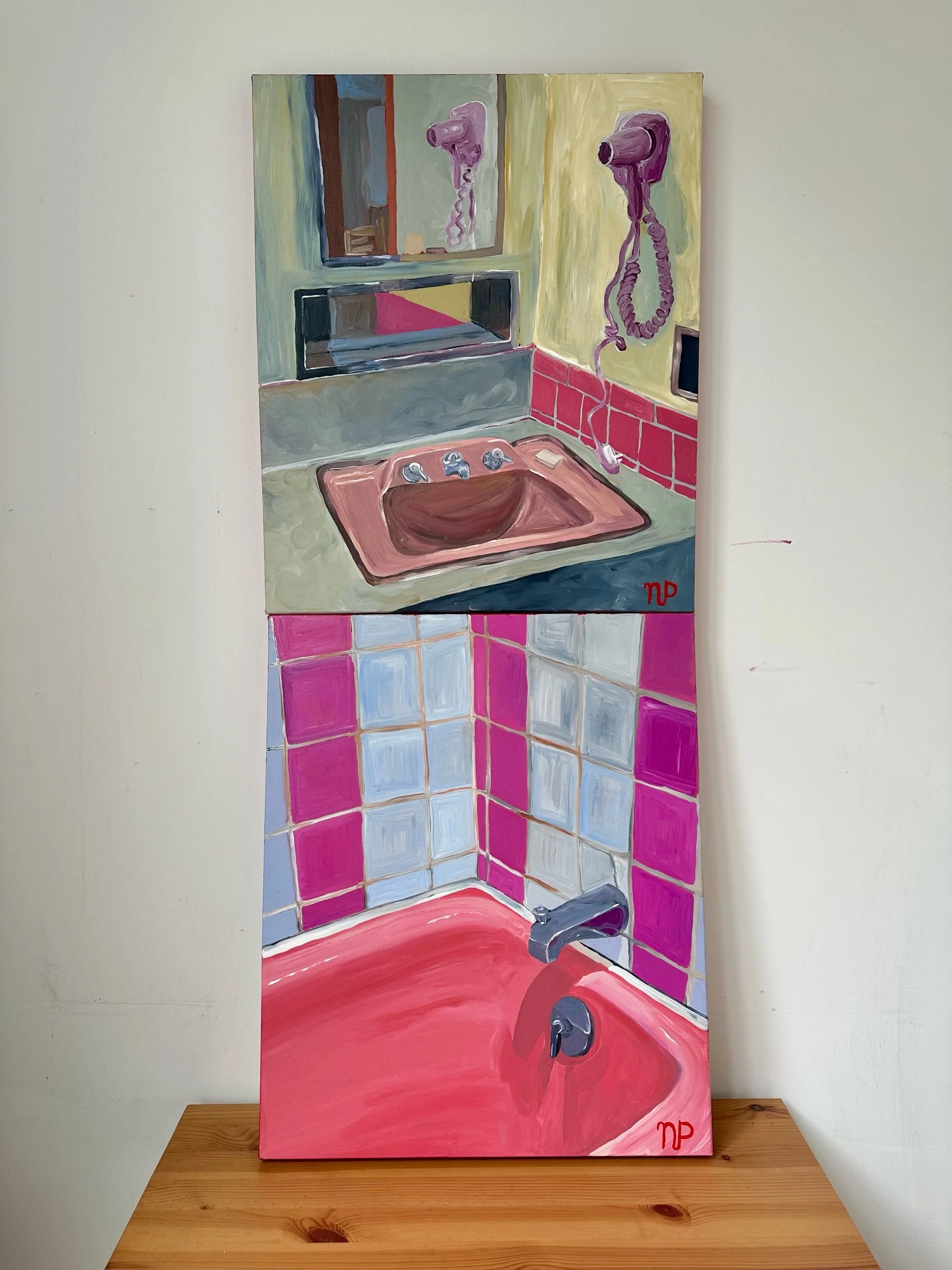 This piece explores the underrated charm of motel rooms from the 70s that were preserved in time. The palette leans toward pinks and yellows and invites a mood of gratefulness and love for the colorful things!
